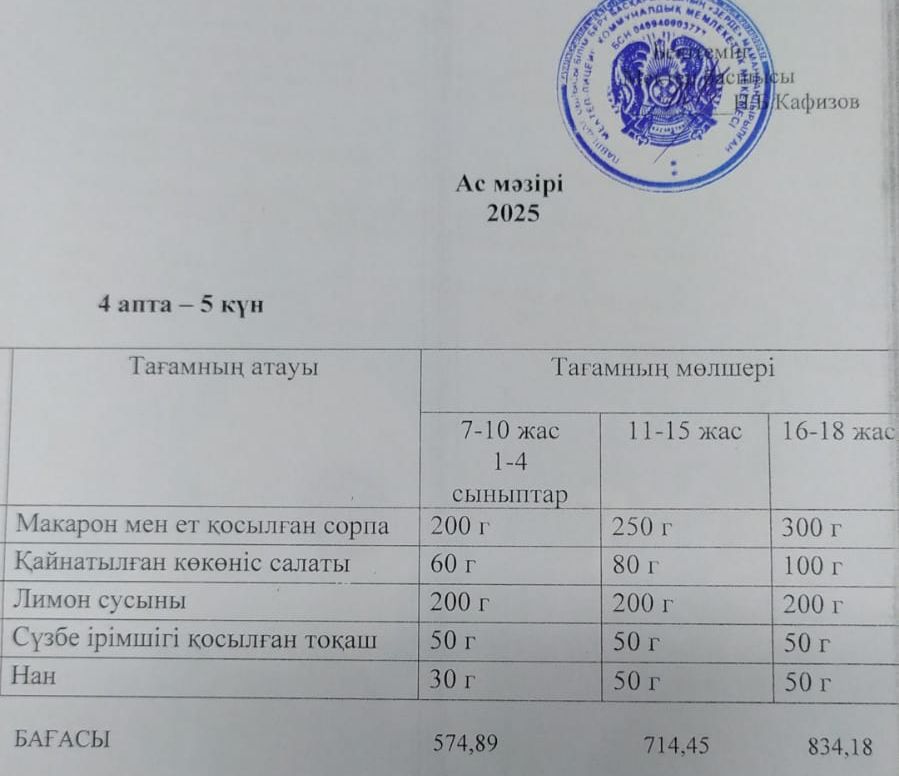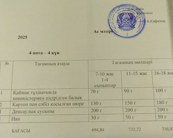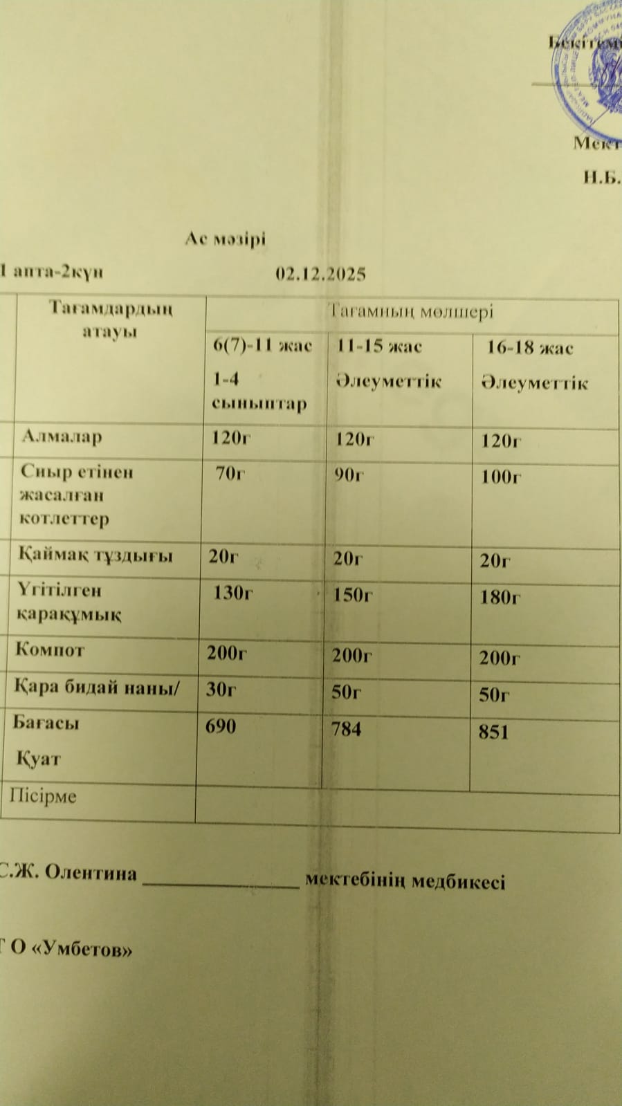 Медбике күнделікті рационда көкөністер мен жемістердің, ақуызға бай тағамдардың және жеткілікті мөлшерде судың болуы керектігін атап өтті. Сондай-ақ, фастфуд, тәтті сусындар мен шамадан тыс тәтті тағамдардың ағзаға тигізетін зияны түсіндірілді.