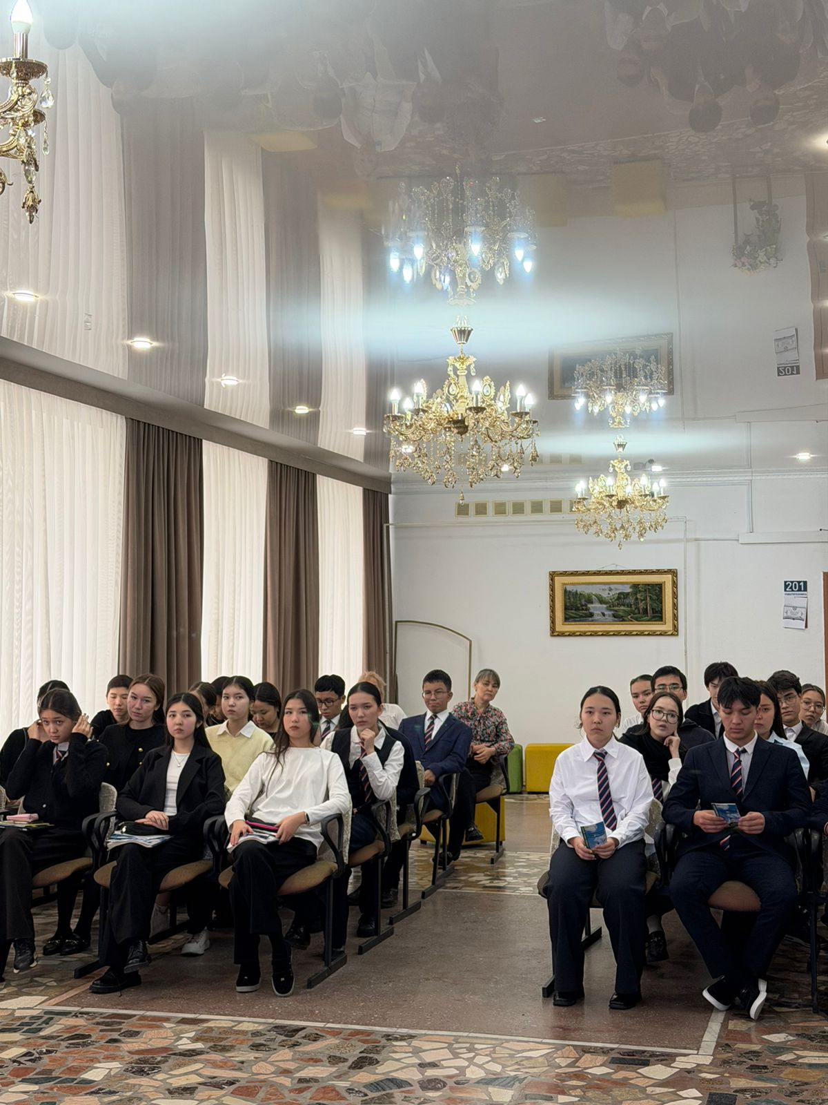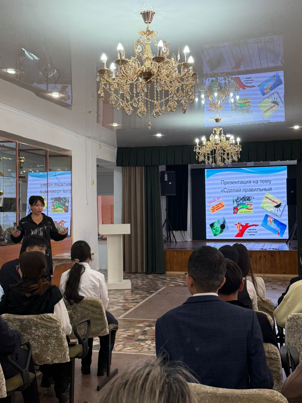 Серік Мұратбекұлы дәріс барысында бейнематериалдар көрсетіп, ақпаратты оқушыларға түсінікті әрі әсерлі түрде жеткізді. Оқушылар өздерін қызықтырған сұрақтарын қойып, маңызды тақырып бойынша пайдалы мәлімет алды.