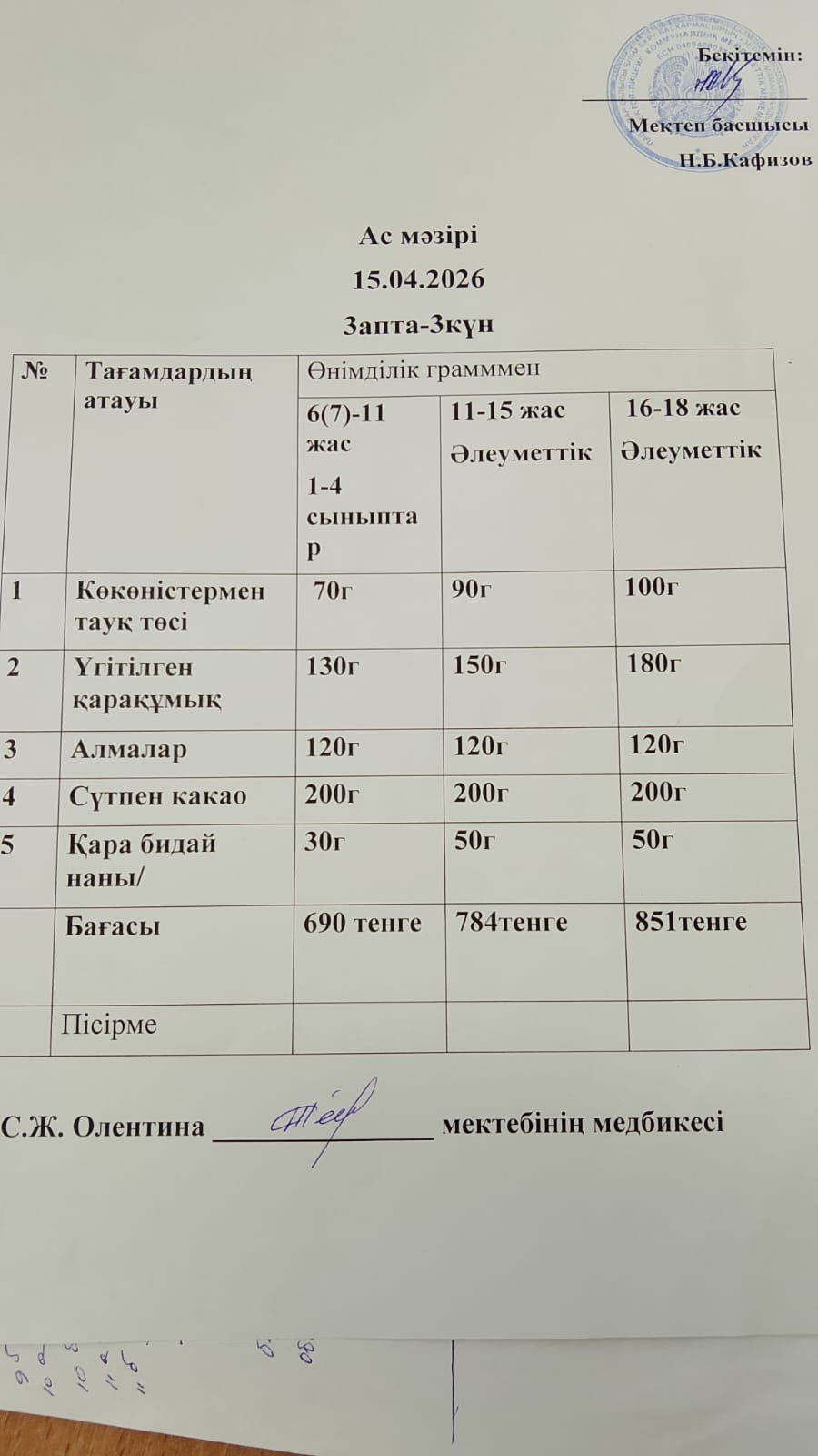 Асхана мәзірі 15.04.2026