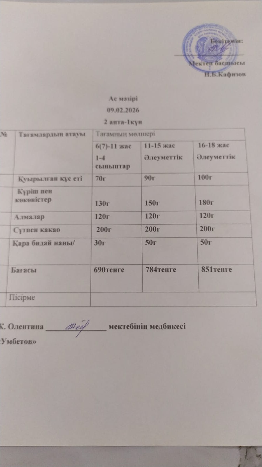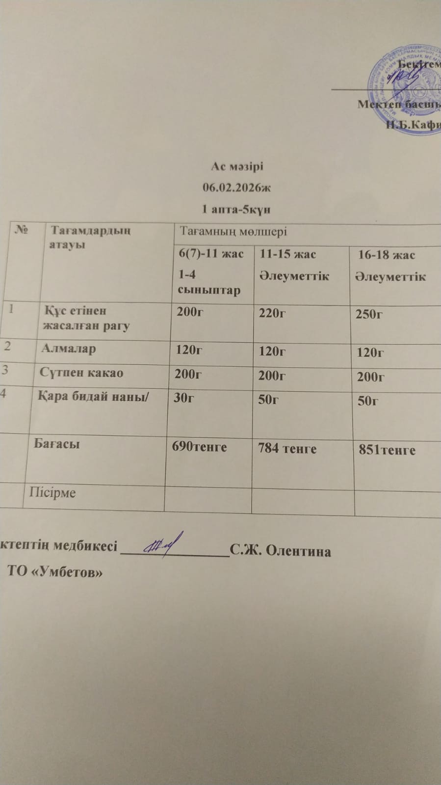 Асхана мәзірі 6.02.2026