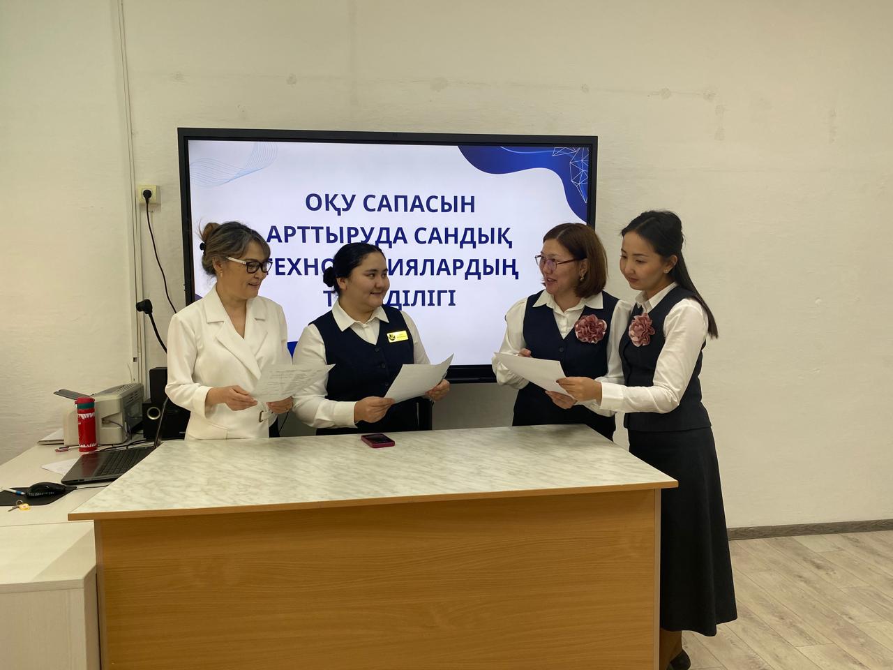 Бүгін мектебімізе "Оқу сапасын арттыруда сандық технологияларлың тиімділігі " атты семинар өтті.Семинар барысында мұғалімдер сандық технологияларды қолдану бойынша өзара тәжірибе алмасып, интерактивті тақтаны оқу-тәрбие үдерісінде тиімді пайдаланудың жолдарымен бөлісті.