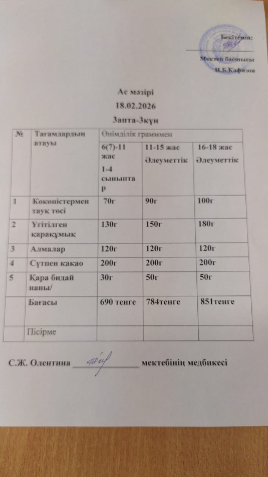 Асхана мәзірі 18.02.2026