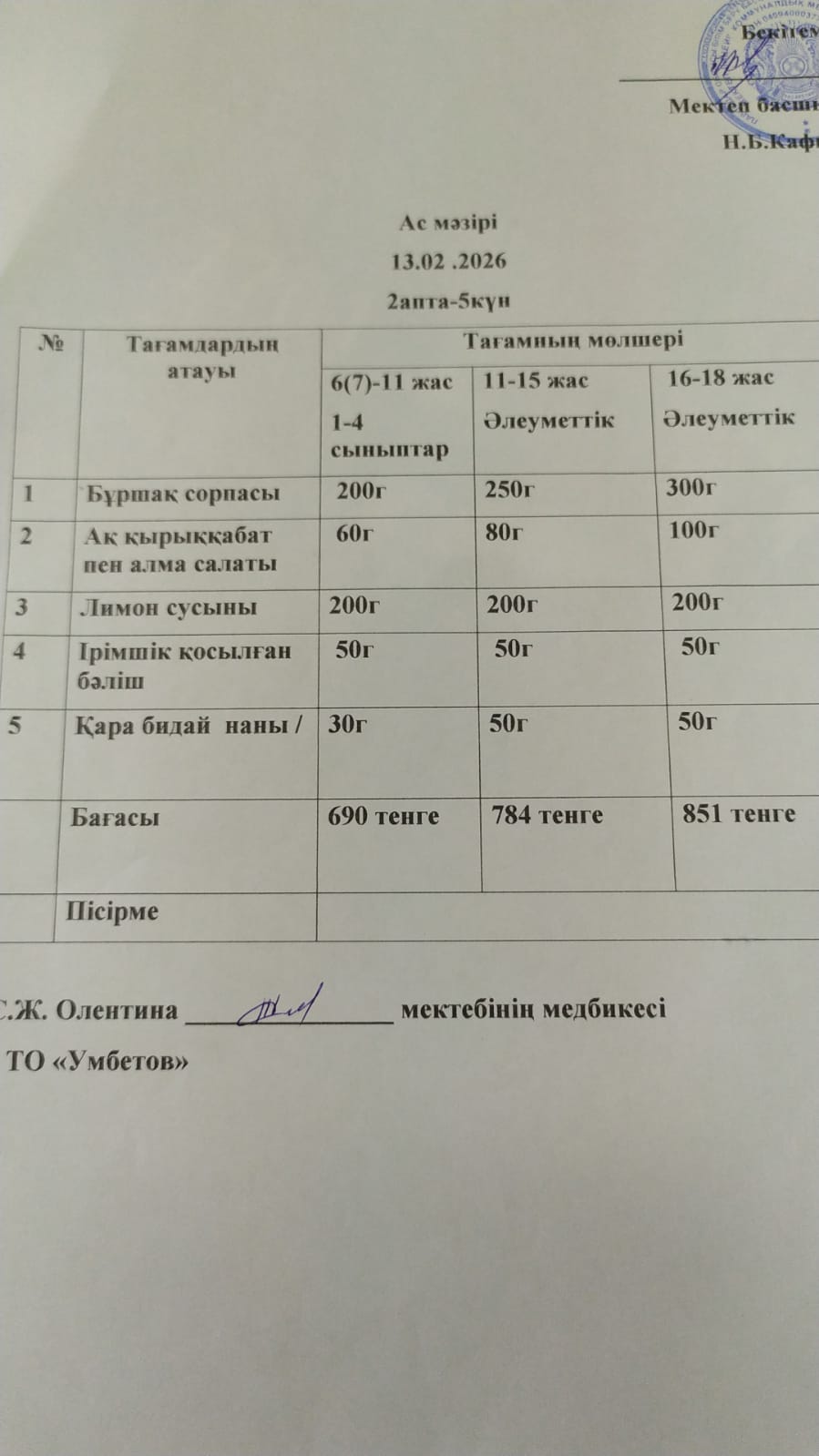 Асхана мәзірі 13.02.2026