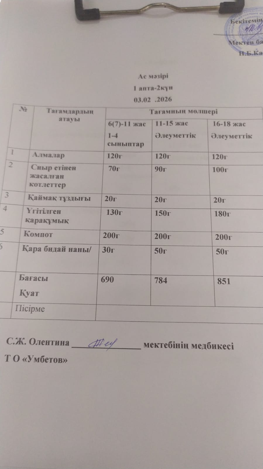 Асхана мәзірі 3.02.2026
