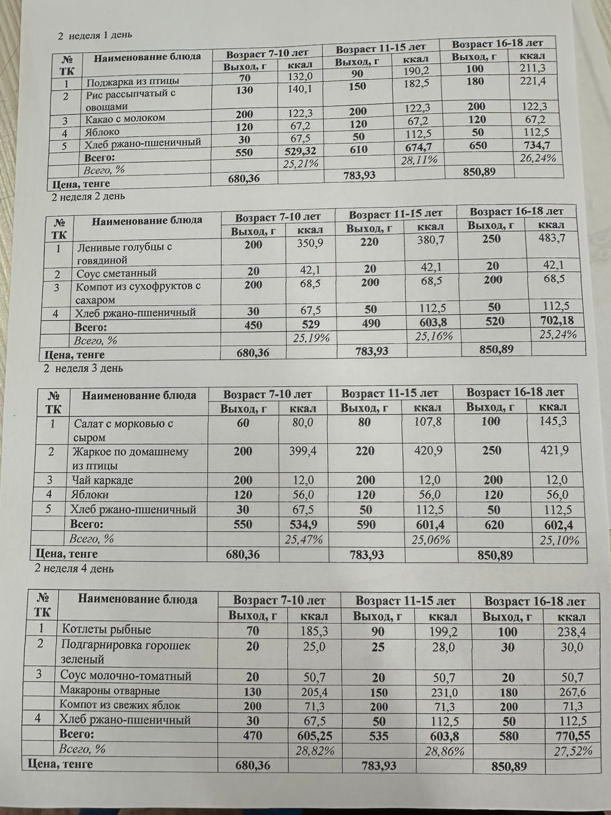 Мектеп оқушыларының тағам рационы бойынша біріңғай стандарттары
